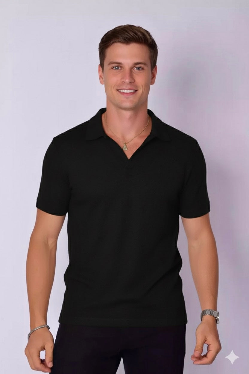 Polo masculina italiana com textura diferenciada, perfeita para um visual elegante e casual. Confeccionada com materiais de qualidade, oferece conforto e estilo para o dia a dia.